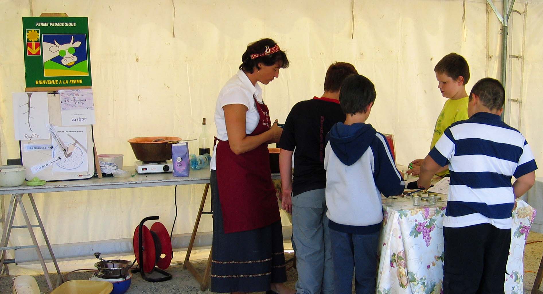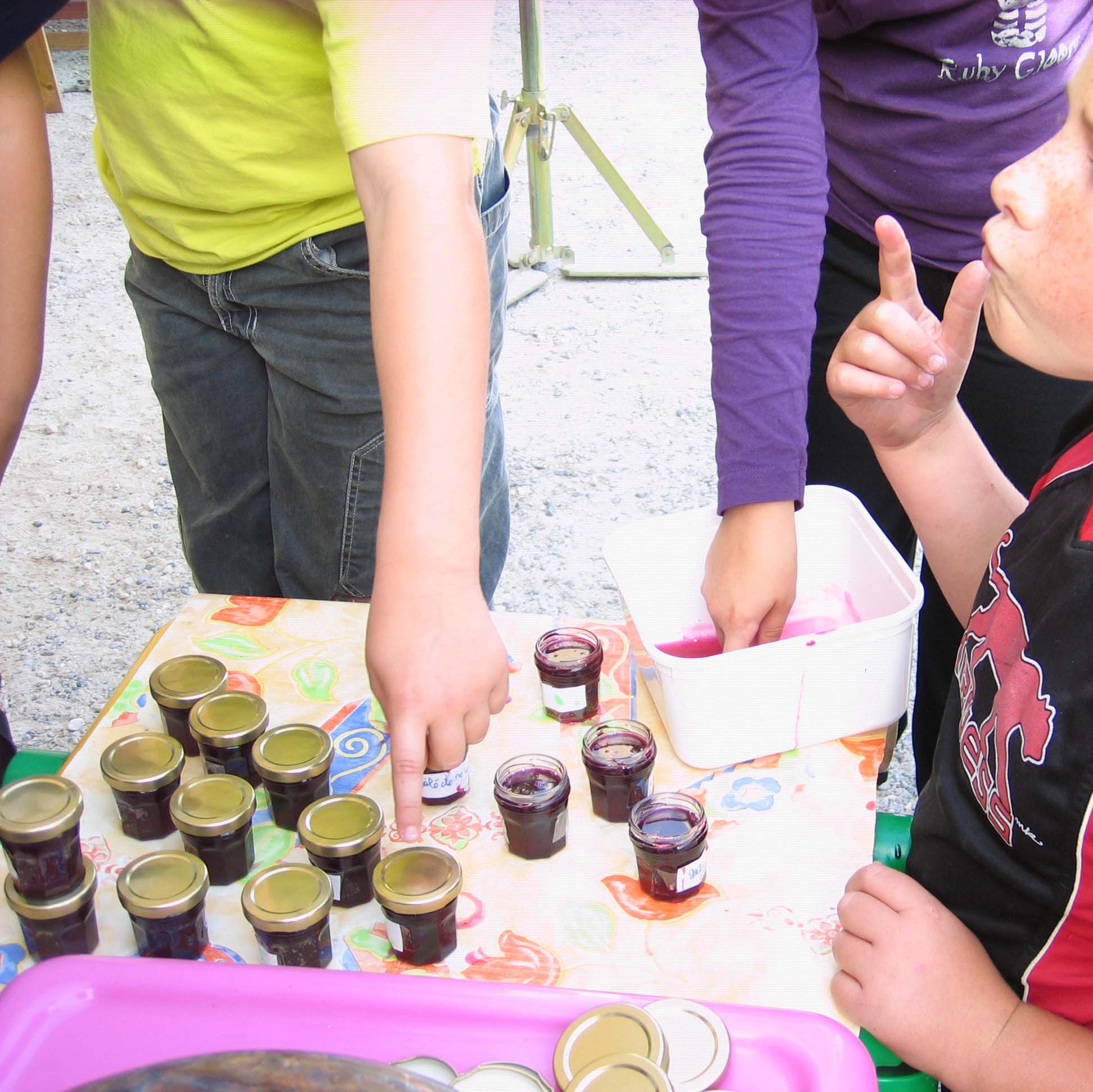 Sur le stand du Domaine de Tout L'y Faut, les enfants ont participés à un atelier jus de raisin et gelée de raisin. Il sont tous repartis avec leur petit pot de "raisiné" étiqueté par leurs soins.